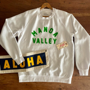 These nostalgic raglan sleeve sweatshirts are appliquéd with wool felt letters that are individually cut and then sewn on with a single needle sewing machine.The fleece is a Super-soft Mid Weight 8.5 oz. They arrive pre-washed ( no detergent ). The cotton broadcloth neck labels are handmade as well. Available in sizes XS thru 2X. Size specs can be found with the product detail photos.